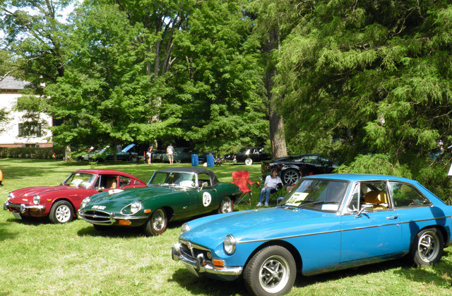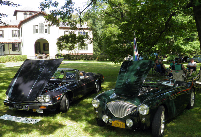 Ted Cryer's Austin Healey 100 & Justin Salsburg's XJS. Note Samuel Morse mansion in back ground.